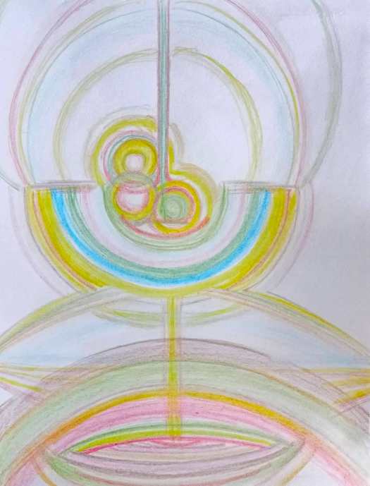 On sene önce, onbir mayıs ikibinoniki, gülümseyen hücreler diye not almışım… Merak ya, ertesi gün yine oturdum, önümde defter, elimde kalemler, baktım renkleri kendi kendine seçen, elimi bir sağa bir sola hareket ettiren bir başka güç var içimde, oniki mayıs ikibinoniki -annemin doğumgünü-, biz ‘evren’ bir’iz demişim… Ertesi gün yeniden, onüç mayıs ikibinoniki, dünya gezegeninin ruhu demişim… Ve ertesi gün yeniden, her oturduğumda, hiç düşünmeksizin, ne olacak diye dert etmeksizin, her gün yeni bir çizim ortaya çıkmış…